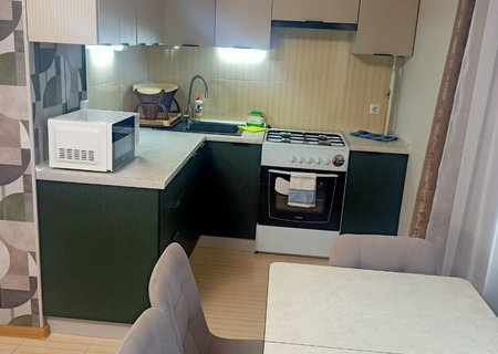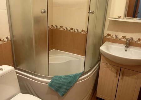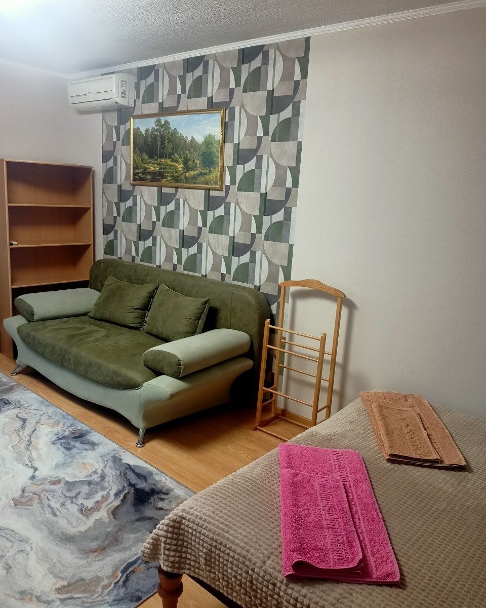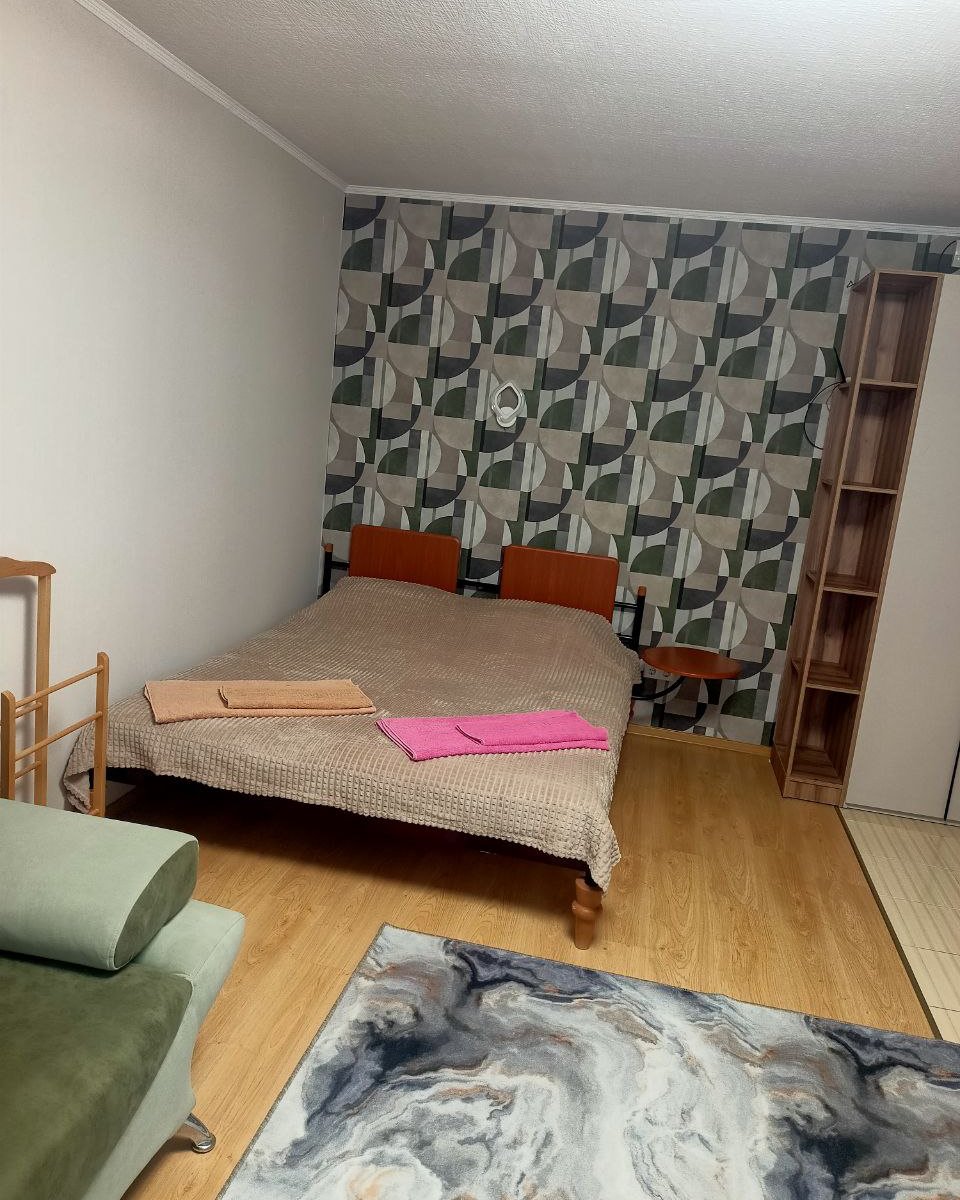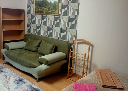 Квартира расположена на втором этаже пятиэтажного дома, и рассчитана на размещение до 4 человека. Во дворе дома есть место для стоянки авто. В квартире имеется одна комната, кухня студия, санузел (унитаз, душ, раковина, вода горячая и холодная идет постоянно), балкон.