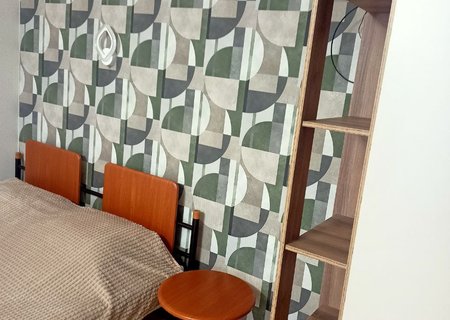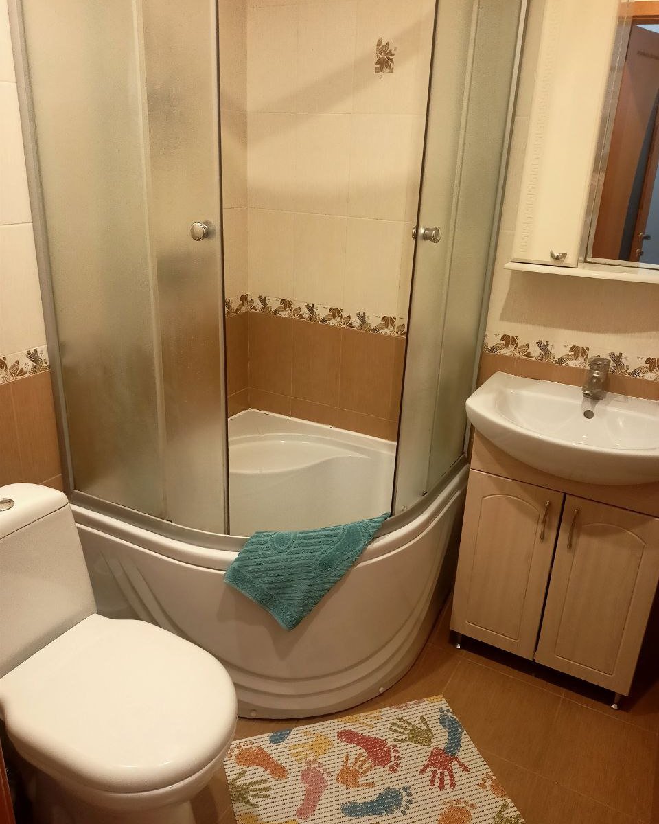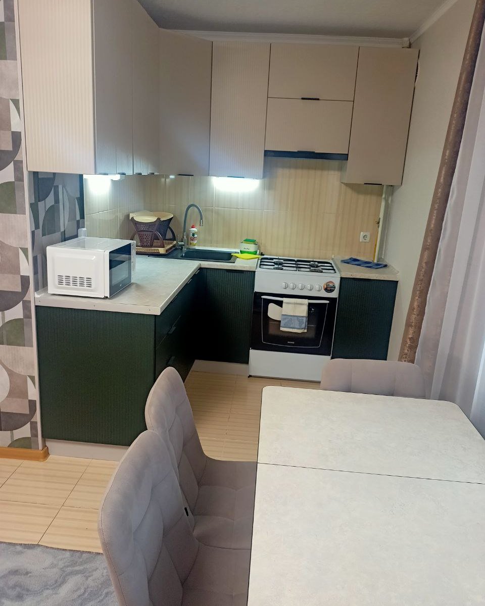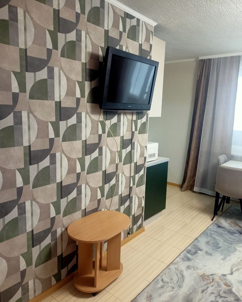 Квартира расположена на втором этаже пятиэтажного дома, и рассчитана на размещение до 4 человека. Во дворе дома есть место для стоянки авто. В квартире имеется одна комната, кухня студия, санузел (унитаз, душ, раковина, вода горячая и холодная идет постоянно), балкон.
