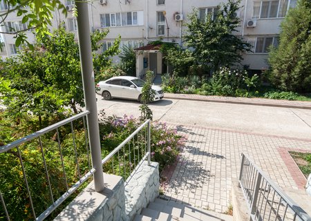 От данной квартиры до моря всего 10 минут ходьбы по бульвару Старшинова, по обеим сторонам которого расположились бутики и магазины. Ближайший пляж — песчаный с неглубоким пологим дном. Этот пляж хорошо подойдет для семейного отдыха с детьми, он так и называется «Детский». Рядом с песчаным пляжем есть галечный пляж «Суворинские камни», морское дно которого покрыто мелким песком.